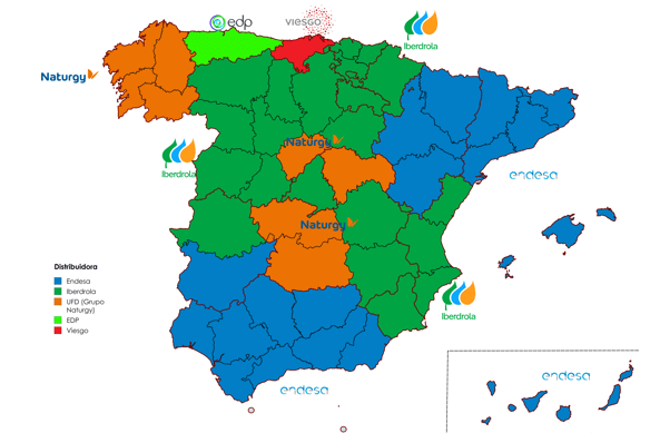 El mapa no es 100% exacto y es simplemente para ayudar a identificar rápidamente en que zonas se encuentran activas las mayores distribuidoras. Hay provincias que se reparten entre varias distribuidoras, el mapa sólo muestra las que tienen mayor presencia en la zona.