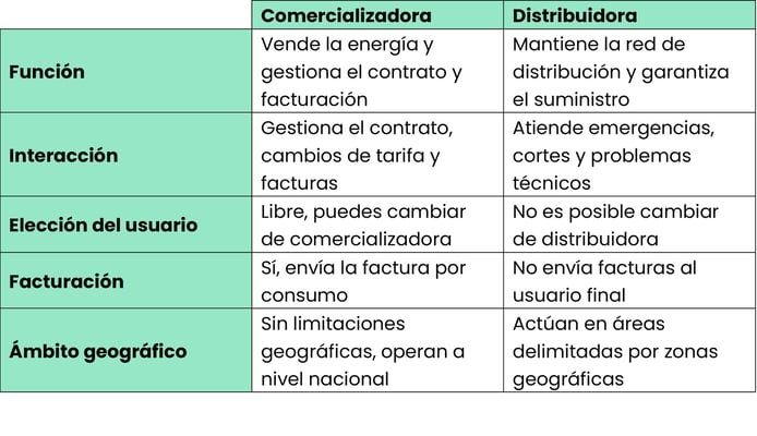 En muchas ocasiones nuestros clientes nos preguntan que diferencias hay entre una comercializadora y una distribuidora. Es normal confundirse con estos términos teniendo en cuenta que a veces una misma empresa puede actuar tanto como comercializadora y distribuidora. Pero la verdad es que sus responsabilidades son muy diferentes. A continuación responderemos a las preguntas más frecuentes que nos hemos encontrado para que puedas entender mejor como interactuar con estas empresas.