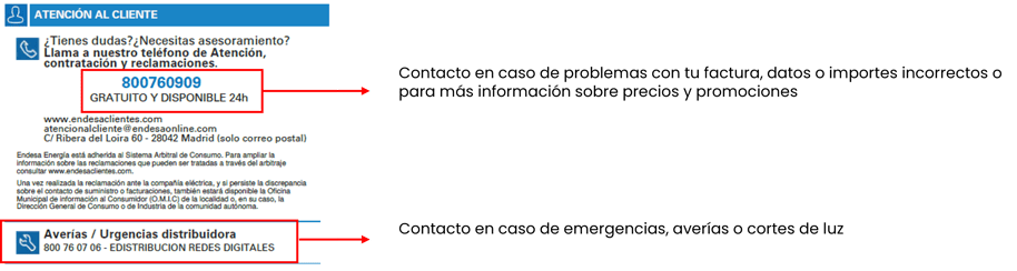 Si tienes contratada la luz con alguna de estas empresas y te fijas en la factura verás que aparecen dos números de contacto diferentes, uno para la parte comercializadora y la otra para las averías de parte de distribuidora.